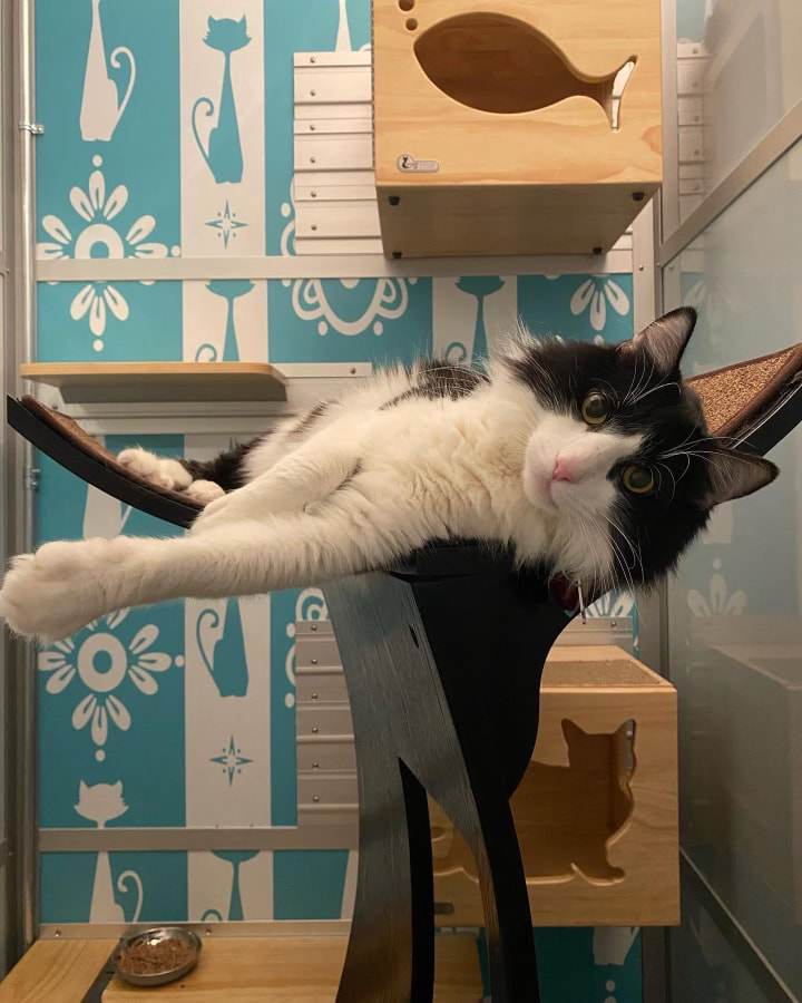 Give your cat a comfortable, peaceful, safe, luxurious stay at Meeow Chicago. Our boarding service caters exclusively to cats. Our cats enjoy luxury, private, atrium suite accommodations like nowhere else. No cage boarding EVER!